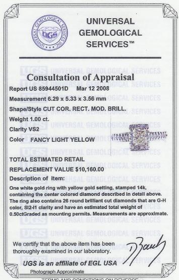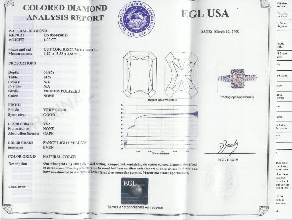 - 1.00 ct. "fancy" light yellow natural, untreated VS2